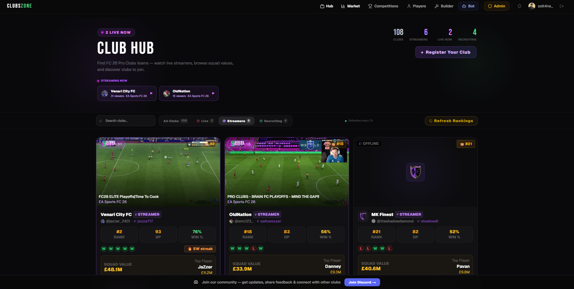 Your profile is your identity on ClubsZone. Link your Discord account, claim your EA username, and let clubs find you on the recruitment board.